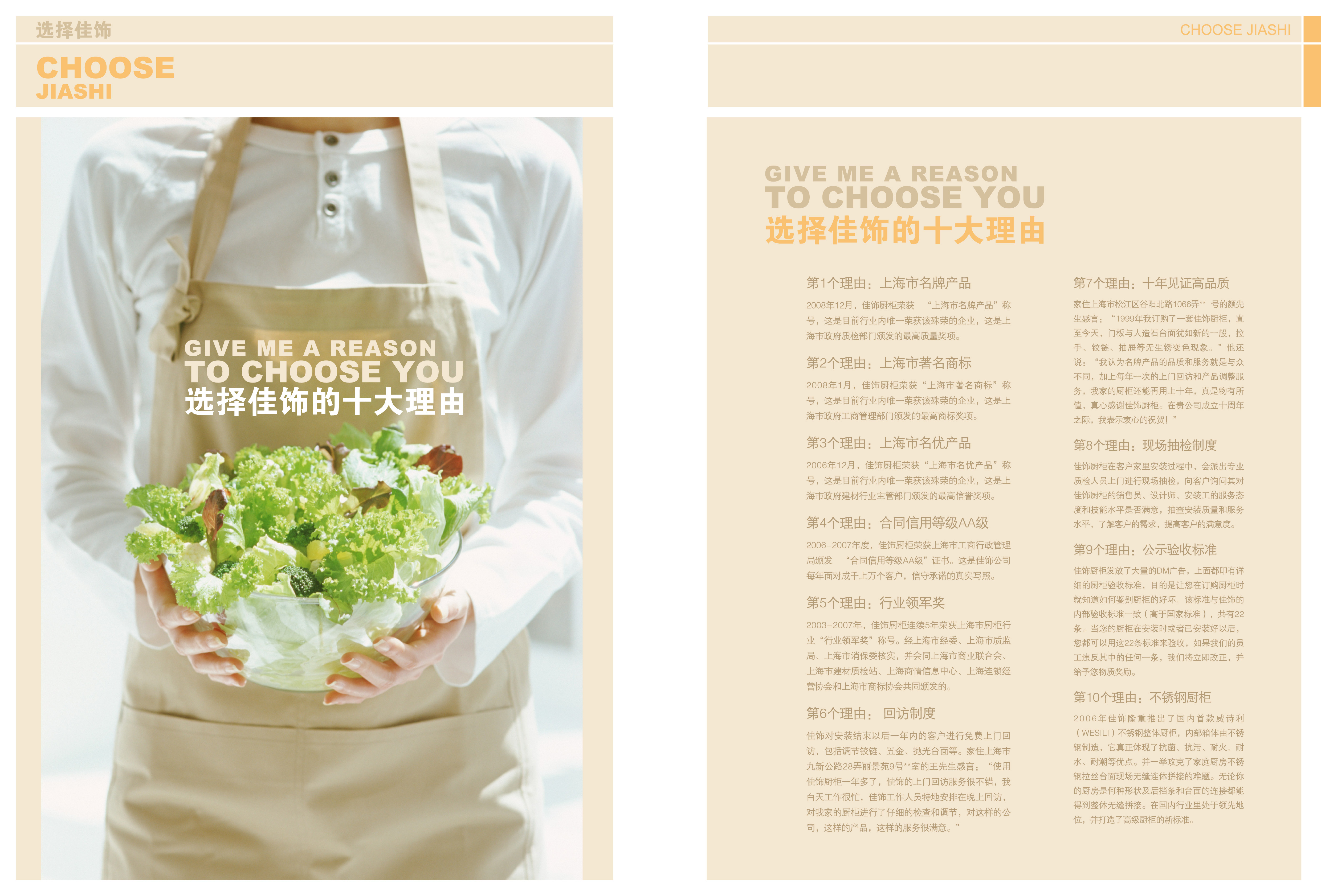公司2002年即通過了 ISO 9001質量體系認證,2015年通過了ISO14001環境管理體系;多年連續榮獲“上海市名牌”、“上海市著名商標”、“上海市名優產品”等榮譽;且常年擔任行業會長、副會長職務。無論是與歐美同步新品廚柜的誕生,還是經濟實用型廚柜的普及,佳飾都走在行業的前列。