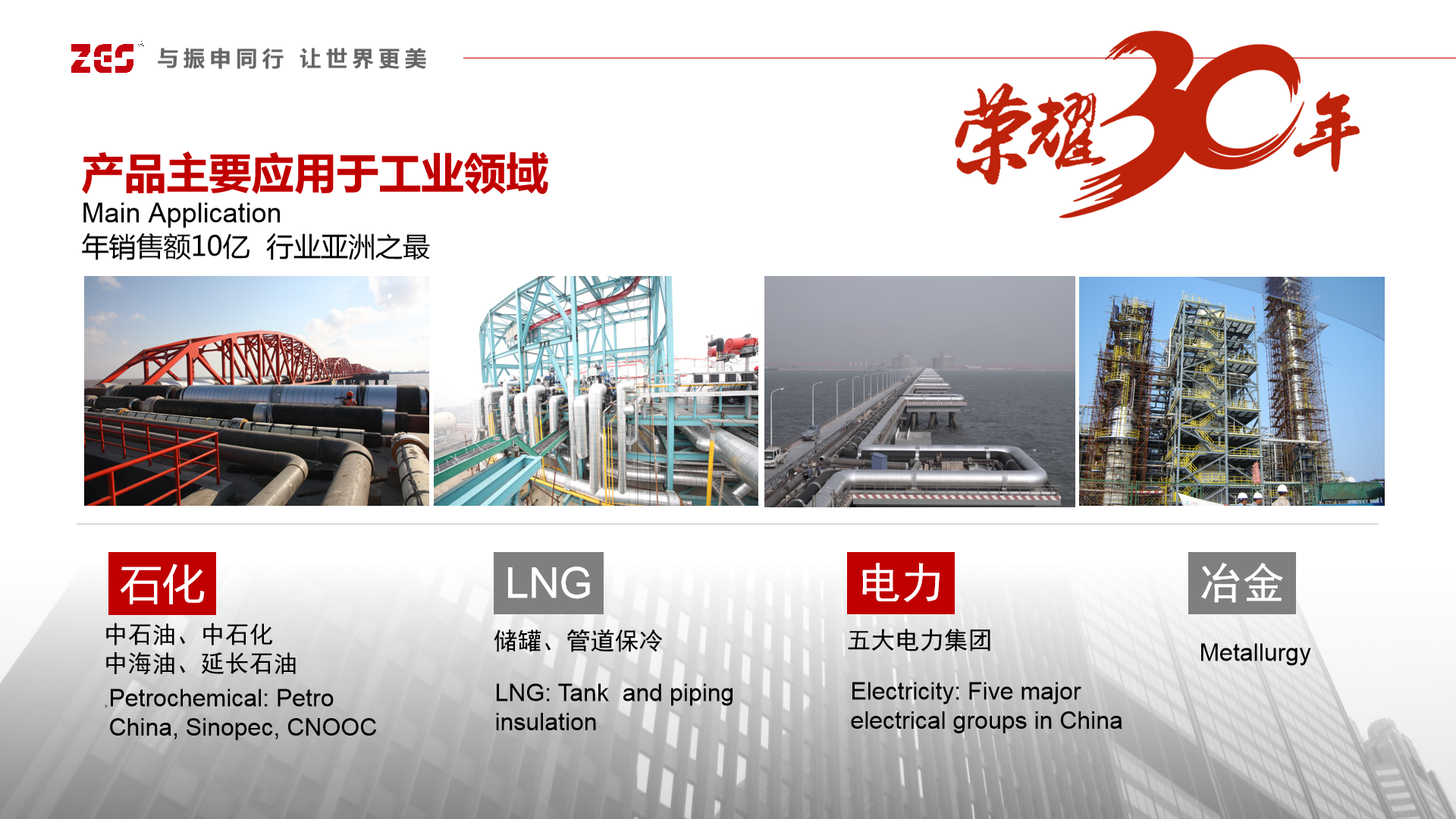 “振華工程”、“振申絕熱”公司現(xiàn)總資產(chǎn)11億元,廠區(qū)占地230畝,生產(chǎn)科研、辦公用房20余萬(wàn)平方米,是集絕熱保溫為主的工程設(shè)計(jì)、產(chǎn)品研發(fā)、集成制作、施工安裝、維修服務(wù)一體化營(yíng)行的公司,特別專注于絕熱保溫領(lǐng)域的前沿技術(shù)研究應(yīng)用,研發(fā)團(tuán)隊(duì)為省級(jí)企業(yè)技術(shù)中心、省級(jí)高新技術(shù)研究開發(fā)中心,具有國(guó)際先進(jìn)的檢測(cè)設(shè)備和研發(fā)設(shè)施,承擔(dān)過(guò)國(guó)家重大科技計(jì)劃和火炬計(jì)劃,擁有科技進(jìn)步獎(jiǎng)、科技成果和自主發(fā)明專利核心技術(shù),主導(dǎo)產(chǎn)品泡沫玻璃及系統(tǒng)部件達(dá)到ASTM標(biāo)準(zhǔn)和CINI規(guī)范,技術(shù)水平國(guó)際先進(jìn)、國(guó)內(nèi)領(lǐng)先。