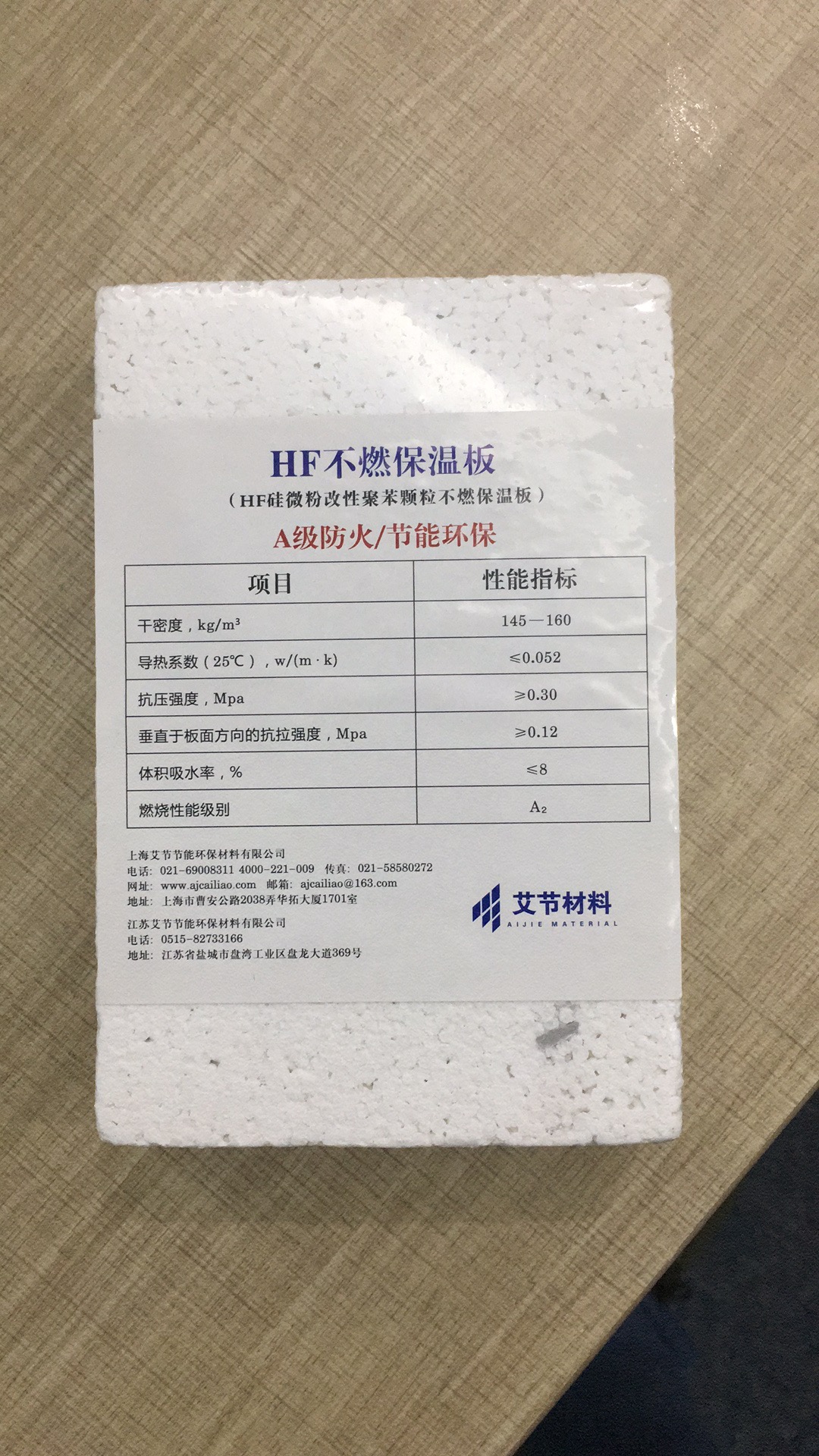 江蘇艾節節能環保材料有限公司專注于墻體環保節能、防火保溫新型材料的研發、生產及銷售。公司聯合北京萬源恒泰科技有限公司共同研發了HF硅微粉改性聚苯顆粒不燃保溫板、HFS復合保溫板,完全滿足《建筑設計防火規范》GB 50016—2014的消防驗收要求和《建筑材料及制品燃燒性能分級》GB8624-2012 中A級要求。并且同時具備良好的導熱、吸水、抗壓、抗折等性能。