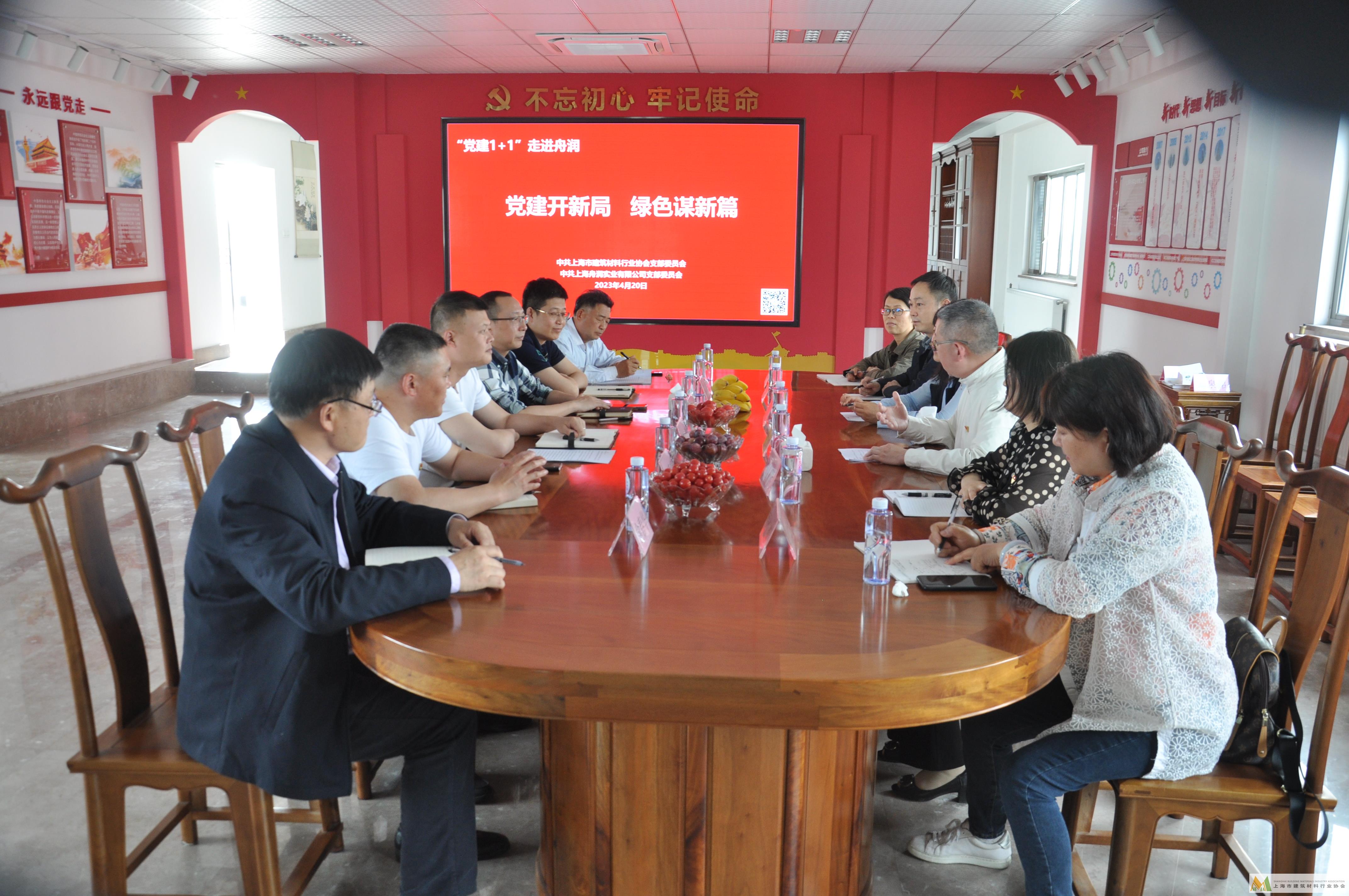 為發(fā)揮黨建工作在推動行業(yè)發(fā)展、凝聚行業(yè)力量中的獨(dú)特魅力,以協(xié)會與企業(yè)組織間開展黨建聯(lián)建的方式,走進(jìn)企業(yè),全面深入了解企業(yè)情況,認(rèn)真做好服務(wù)企業(yè)工作。4月20日下午,“黨建1+1”開啟2023年首站之行,協(xié)會黨員走進(jìn)上海舟潤實(shí)業(yè)有限公司黨支部,開展黨建聯(lián)建活動。