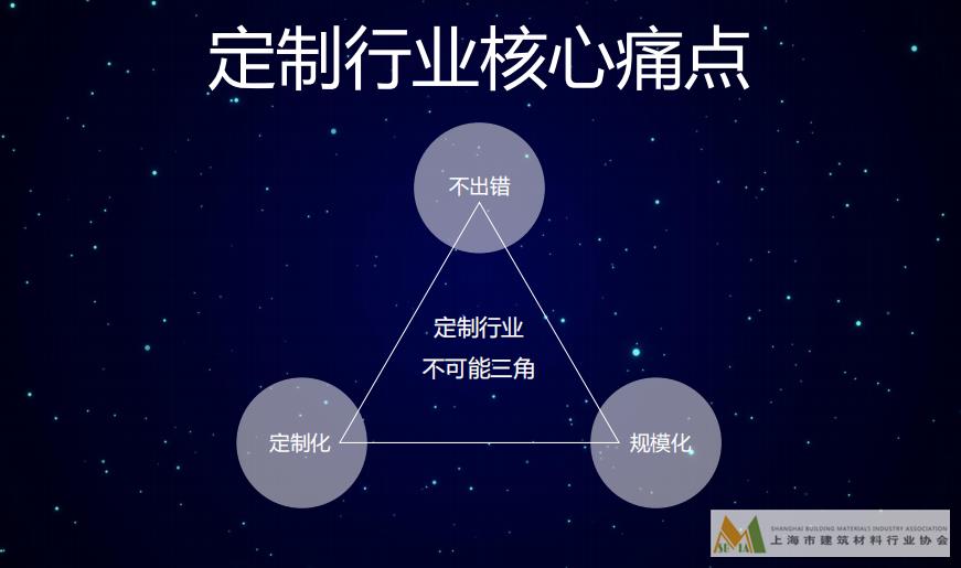 定制家居行業未來的趨勢也將進行設計、生產、服務等分工,每個人發揮自己的優勢,未來不是一個人跑400米,而是4個人接力跑完400米,同行將變成朋友,共同建立行業的生態圈,共榮發展,交流會上上海宇邦廚具有限公司董事長、上海市建筑材料行業協會定制家居分會會長吳世峰說到。如何把滿足客戶需求的訂單變成工廠柔性化、規模化的制造,就必須要以數字化的方式把整個流程串起來,未來誰掌握了定制家居數字化誰就擁有了這把鑰匙。