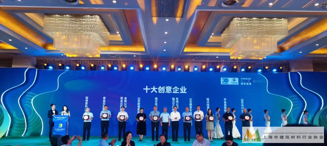儀式現場,為臨沂木博會“十大金牌參展商”、臨沂“十大創意”木業企業、臨沂“十大創新”木業企業、臨沂“十大創業”木業企業頒獎,歐普家居集團榮獲臨沂·木業走過30年“十大創意”企業獎牌。
